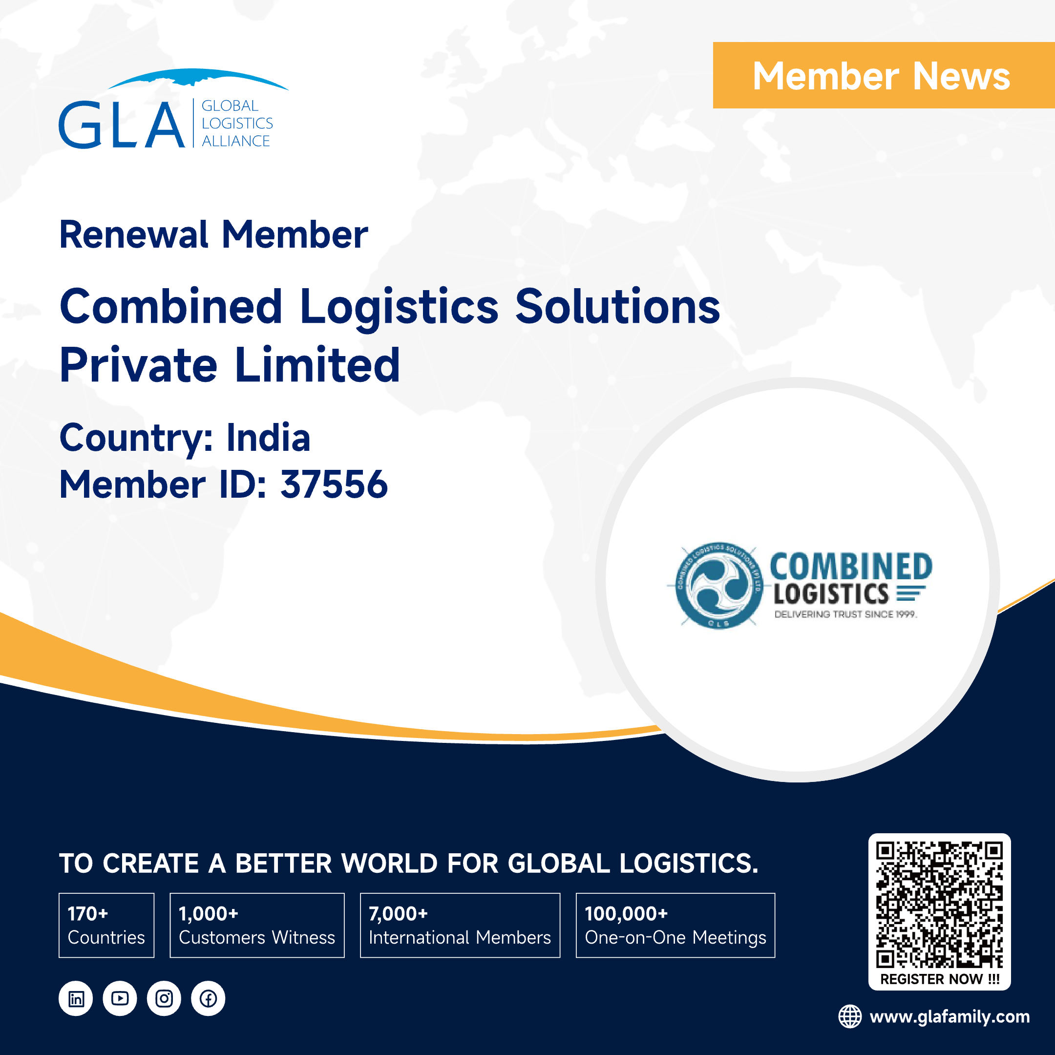 It is our great honor to announce that Combined Logistics Solutions Private Limited has renewed GLA Family as a diamond member from India, If you need India service, you can feel free to contact Muhammad Ahmed.About Combined Logistics Solutions Private LimitedCombined Logistics Solutions is an International F...