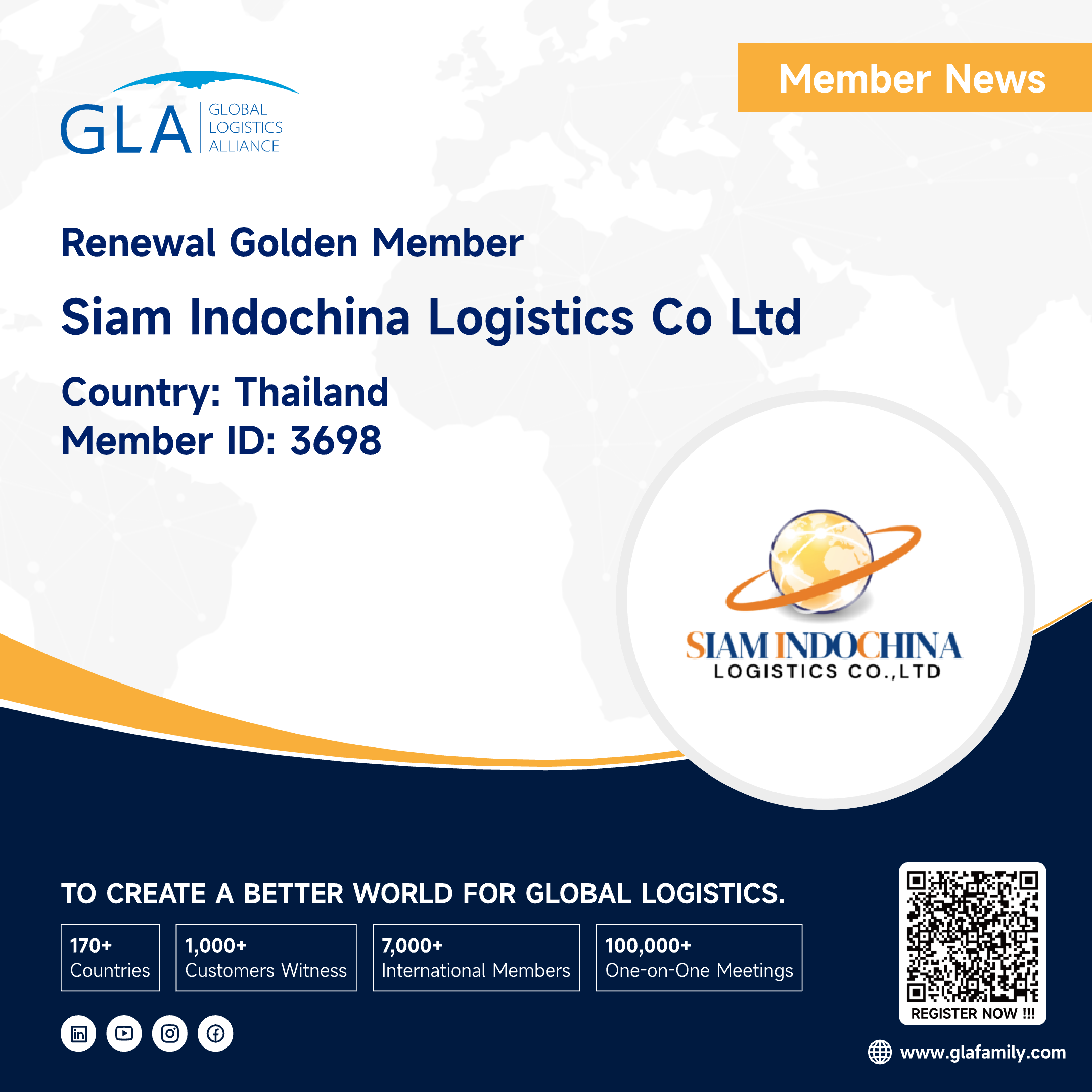It is our great honor to announce that Siam Indochina Logistics Co,LTD has renewed GLA Family as a golden member from Thailand, If you need Thailand service, you can feel free to contact Ravisada Hirunvivatkul.About Siam Indochina Logistics Co,LTDSiam Indochina Logistics co ltd is located in Bangkok Tha...