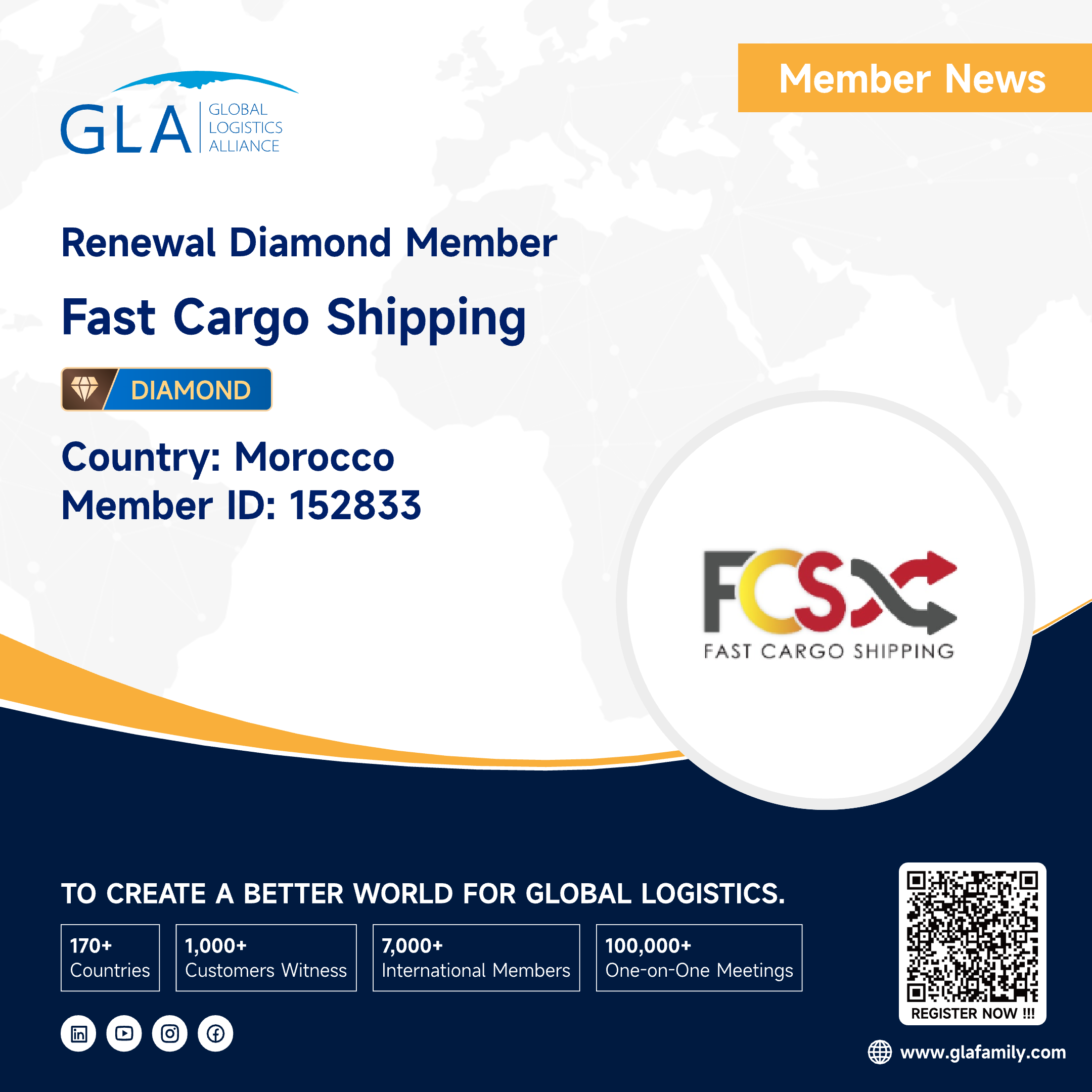 It is our great honor to announce that Fast Cargo Shipping has renewed GLA Family as a diamond member from Morocco, If you need Morocco service, you can feel free to contact Oualdou.About Fast Cargo ShippingWe are a global leader in shipping forwarding and logistics serving thousands of customers directly from all over th...
