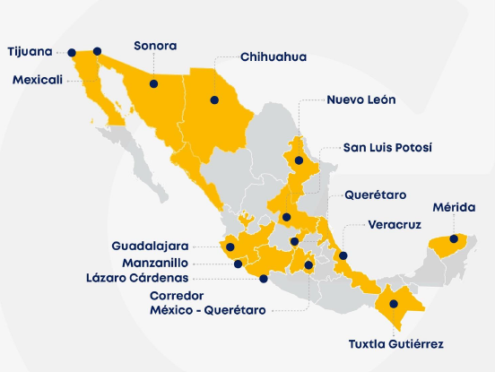 We operate a strategic network of warehouses across Mexico’s key industrial hubs, providing seamless logistics coverage throughout Mexico and the United States. Our comprehensive service portfolio includes specialized storage solutions, cross-docking, and end-to-end distribution, ensuring efficient supply chain connectivity across North America.